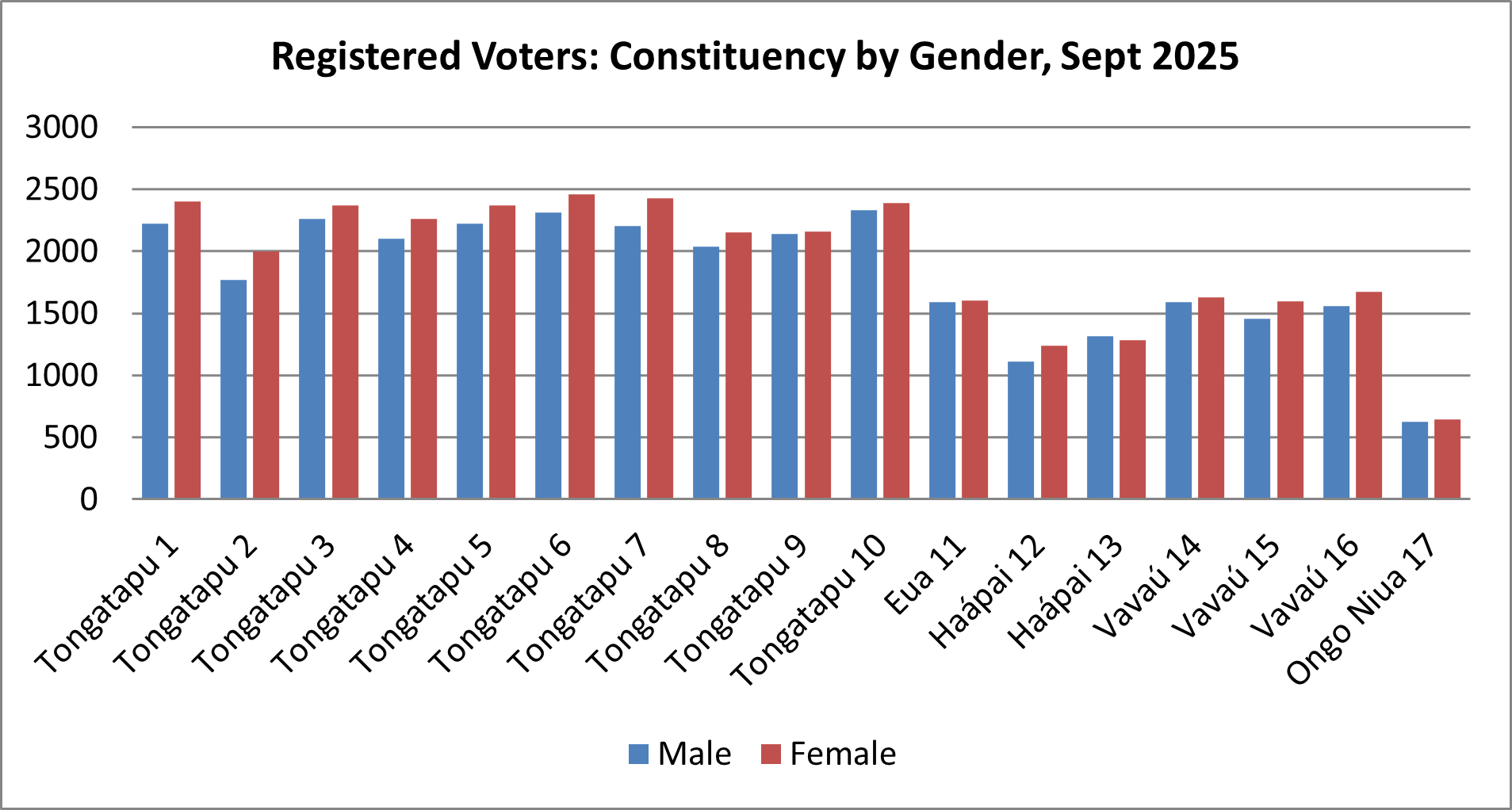 Registered Voters: Constituency by Gender as of 19th September 2025.
